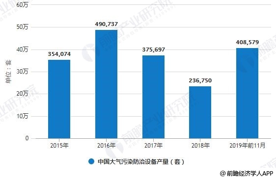 2015-2019年前11月中國大氣污染防治設(shè)備產(chǎn)量統(tǒng)計情況