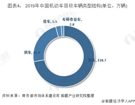 按照車輛類型分,2019年客車回收數(shù)量為138.7萬輛,同比增長17.1%。貨車45.3萬輛,同比增長18.9%。掛車5.5萬輛,同比增長29.3%。專項作業(yè)車2.8萬輛,同比下降1.4%。