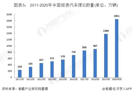 三、2020年我國報廢汽車數(shù)量逼近1850萬輛