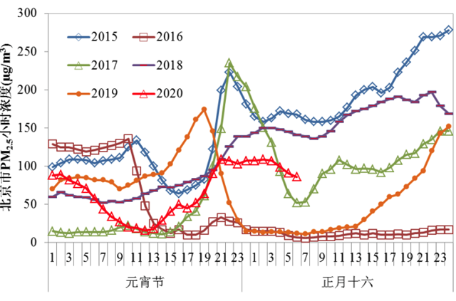圖42015年至2020年元宵節(jié)期間北京市逐小時(shí)PM2.5濃度