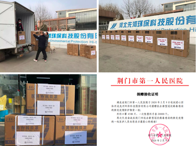 截至目前,先河累計為湖北捐贈醫(yī)療廢物轉(zhuǎn)運車6輛、醫(yī)療廢水在線監(jiān)測設(shè)備2臺、口罩30000多只、手套20000多雙、酒精300多箱、泡騰片80000多片、凈化器200多臺,為當(dāng)?shù)匾咔榉揽刈钃魬?zhàn)貢獻(xiàn)力量。