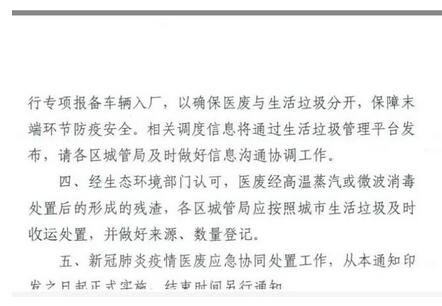 最為醒目的一點(diǎn),當(dāng)區(qū)域內(nèi)現(xiàn)有處置能力無(wú)法滿(mǎn)足肺炎疫情醫(yī)療廢物應(yīng)急處置需要時(shí),應(yīng)立即啟動(dòng)應(yīng)急預(yù)案,可以選擇可移動(dòng)式醫(yī)療廢物處置設(shè)施、危險(xiǎn)廢物焚燒設(shè)施、生活垃圾焚燒設(shè)施、工業(yè)爐窯等設(shè)施應(yīng)急處置肺炎疫情醫(yī)療廢物,實(shí)行定點(diǎn)管理。