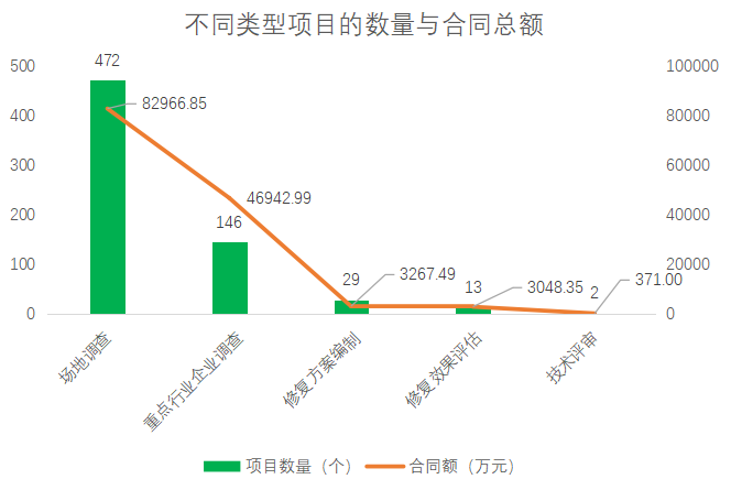 (6)市政城管部門,主導(dǎo)的項(xiàng)目多為非正規(guī)填埋場的調(diào)查、修復(fù)工作。