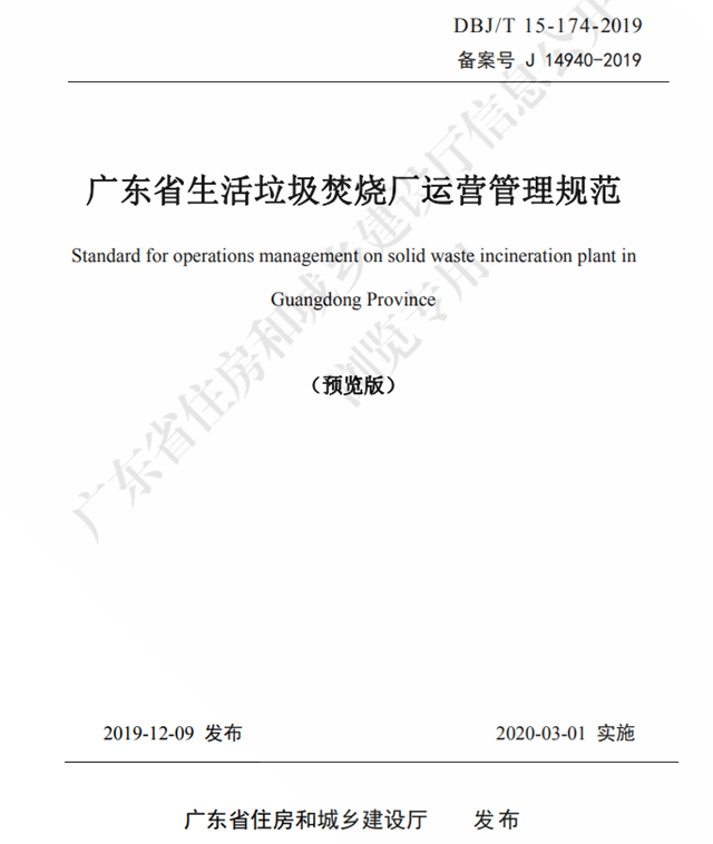 經(jīng)組織專家委員會(huì)審查,現(xiàn)批準(zhǔn)《廣東省生活垃圾焚燒廠運(yùn)營管理規(guī)范》為廣東省地方標(biāo)準(zhǔn),編號(hào)為DBJ/T 15-174-2019。本標(biāo)準(zhǔn)自2020年3月1日起實(shí)施。