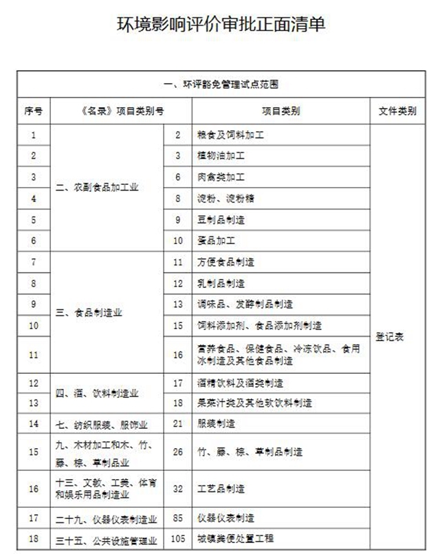 (四)制定實(shí)施環(huán)評(píng)審批正面清單,便利項(xiàng)目開工建設(shè)