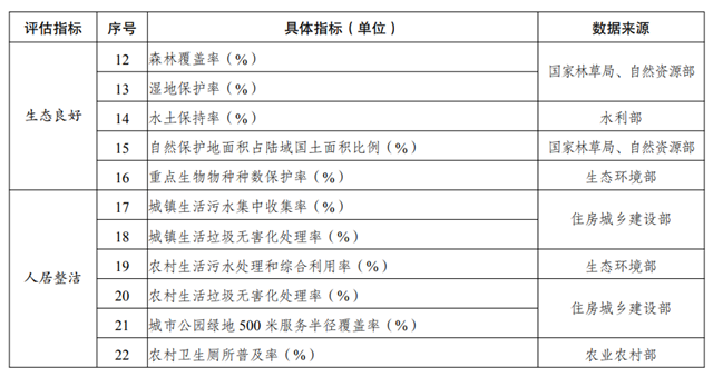 美麗中國是生態(tài)文明建設(shè)成果的集中體現(xiàn)。美麗中國建設(shè)評估指標(biāo)體系包括空氣清新、水體潔凈、土壤安全、生態(tài)良好、人居整潔 5 類指標(biāo)。按照突出重點(diǎn)、群眾關(guān)切、數(shù)據(jù)可得的原則,注重美麗中國建設(shè)進(jìn)程結(jié)果性評估,分類細(xì)化提出 22 項(xiàng)具體指標(biāo)。后續(xù)將根據(jù)黨中央、國務(wù)院部署以及經(jīng)濟(jì)社會(huì)發(fā)展、生態(tài)文明建設(shè)實(shí)際情況,對美麗中國建設(shè)評估指標(biāo)體系持續(xù)進(jìn)行完善。
