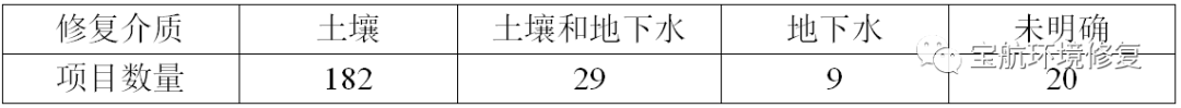 表3 不同修復(fù)介質(zhì)項目數(shù)量