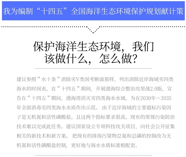 “我為海洋生態(tài)環(huán)境保護(hù)建言獻(xiàn)策”期待你的建言,也可以直接在下方留言框進(jìn)行互動哦。