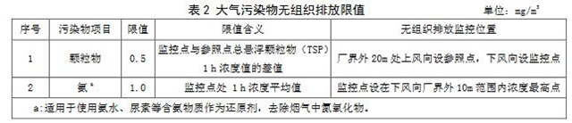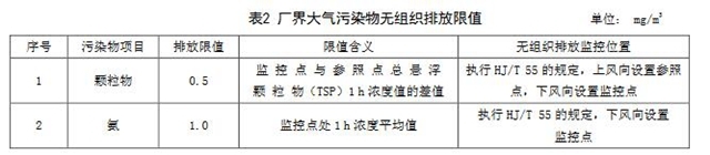 4.2.2自本標準實施之日起,平板玻璃工業(yè)企業(yè)及生產設施大氣污染物無組織排放監(jiān)控點濃度限值應符合表2規(guī)定。