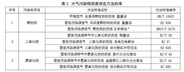 5.3大氣污染物濃度測定方法標準對大氣污染物排放濃度的測定選取表3中所列的方法標準。本標準實施后國家發(fā)布的污染物監(jiān)測方法標準,如適用性滿足要求,同樣適用于本標準相應污染物的測定。