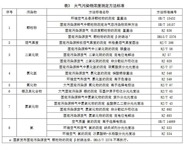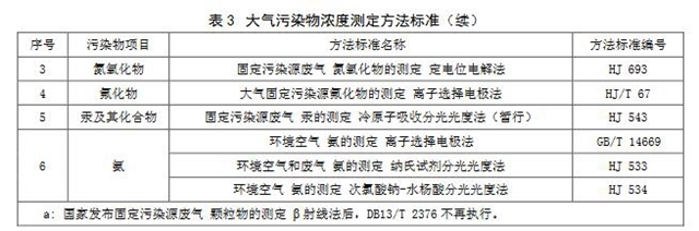 5.3.1大氣污染物的分析測定選取表3中所列的方法標準。