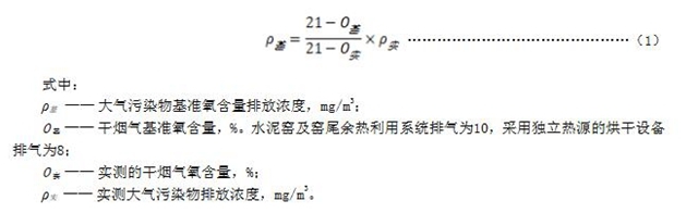 6.3正常工況下,對于水泥窯及窯尾余熱利用系統(tǒng)排氣、采用獨立熱源的烘干設備排氣,應同時對排氣中氧含量進行監(jiān)測,實測大氣污染物排放濃度應按公式(1)換算為基準氧含量狀態(tài)下的基準排放濃度,并以此作為判定排放是否達標的依據(jù)。