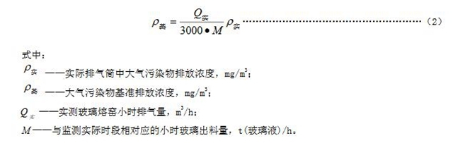 6.4純氧燃燒玻璃熔窯應監(jiān)測排氣筒中大氣污染物排氣濃度、排氣量及相應時間的玻璃出料量,按式(2)計算基準排放量[3000 m3/t(玻璃液)]條件下的基準排放濃度,并以此作為判定排放是否達標的依據(jù)。