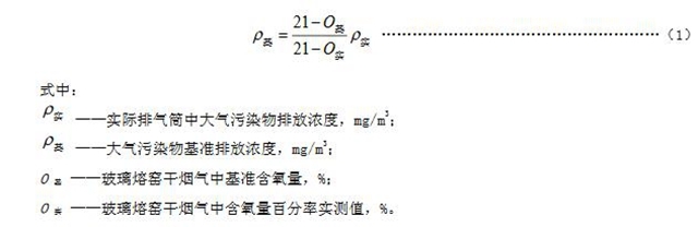6.3正常工況下,對于玻璃熔窯排氣(純氧燃燒除外),應同時對排氣中含氧量進行監(jiān)測,實測排氣筒中大氣污染物排放濃度應按式(1)換算為基準含氧量為8%狀態(tài)下的基準排放濃度,并以此作為排放是否達標的依據(jù)。
