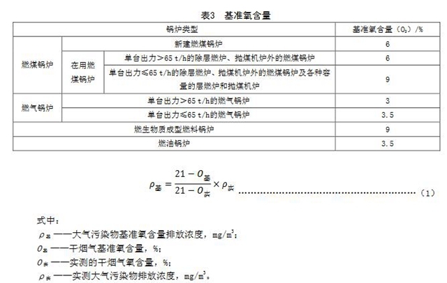 5.2大氣污染物基準氧含量排放濃度折算方法實測的鍋爐顆粒物、二氧化硫、氮氧化物和汞及其化合物的排放濃度,必須按公式(1)折算為基準氧含量排放濃度。鍋爐的基準氧含量按表3的規(guī)定執(zhí)行。