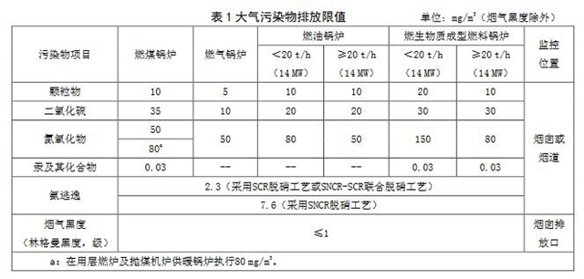 4.1.1新建鍋爐自本標準實施之日起執(zhí)行表1規(guī)定的大氣污染物排放限值。