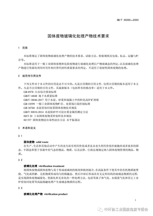 日前全國產(chǎn)品回收利用基礎(chǔ)與管理標(biāo)準(zhǔn)化技術(shù)委員會發(fā)布了《固體廢物玻璃化處理產(chǎn)物技術(shù)要求(征求意見稿)》,具體內(nèi)容如下: