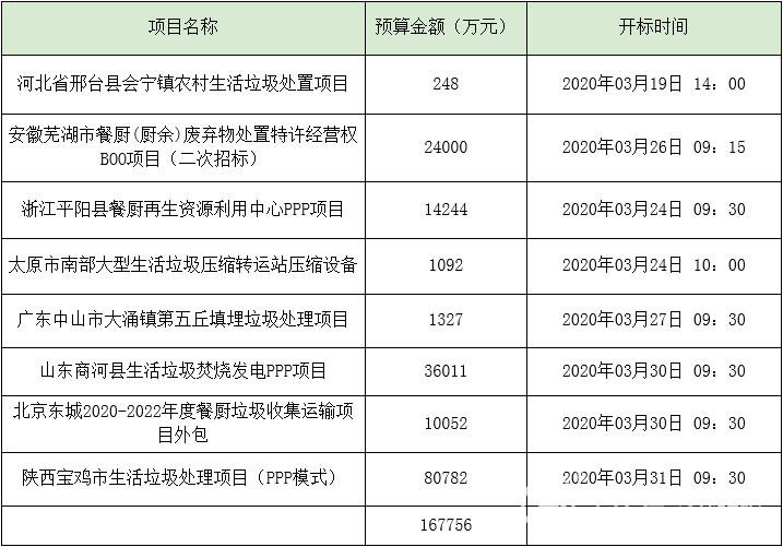 2020年3月,環(huán)衛(wèi)項目開標忙。【可回顧“21億環(huán)衛(wèi)項目卷風(fēng)云 馬上就要開標了”】