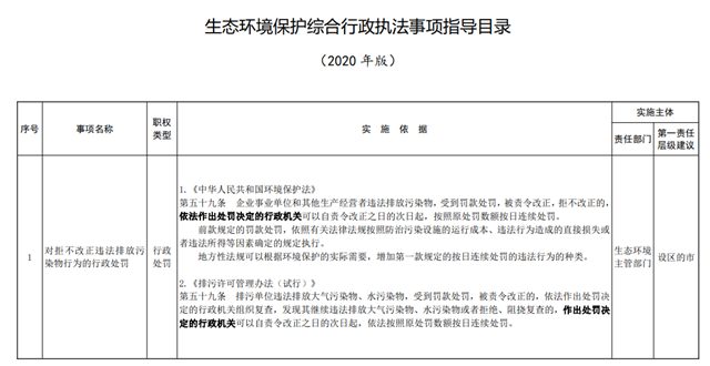 詳情點擊:《生態(tài)環(huán)境保護(hù)綜合行政執(zhí)法事項指導(dǎo)目錄(2020年版)》
