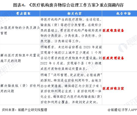 通過對該文件核心要點的解讀,可以看出未來與醫(yī)廢處理相關的醫(yī)廢處理設施、醫(yī)廢收集工具、醫(yī)廢回收利用方案等領域存在較大市場機會。