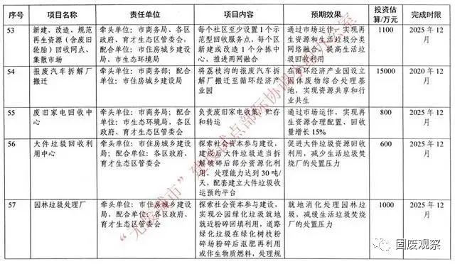 “無(wú)廢城市”試點(diǎn)盛宴的鍋蓋揭開(kāi)據(jù)第一財(cái)經(jīng)記者了解,“11+5”個(gè)試點(diǎn)城市和地區(qū)的“無(wú)廢城市”建設(shè)試點(diǎn)實(shí)施方案,均需通過(guò)專(zhuān)家委員會(huì)專(zhuān)家評(píng)審。去年9月,實(shí)施方案通過(guò)了評(píng)審,但仍需根據(jù)評(píng)審專(zhuān)家組意見(jiàn)和建議修改完善。今年3月,“11+5”個(gè)試點(diǎn)城市和地區(qū)的“無(wú)廢城市”建設(shè)試點(diǎn)實(shí)施方案最終定稿,盛宴的鍋蓋揭開(kāi)了。根據(jù)《深圳市“無(wú)廢城市”建設(shè)試點(diǎn)實(shí)施方案》,試點(diǎn)各項(xiàng)任務(wù)所需資金由財(cái)政保障。編制國(guó)土空間規(guī)劃時(shí),應(yīng)前瞻預(yù)留固體廢物處理處置設(shè)施用地。到2020年底,固體廢物全部實(shí)現(xiàn)無(wú)害化處置。人均生活垃圾產(chǎn)生量趨零增長(zhǎng),工業(yè)固體廢物產(chǎn)生強(qiáng)度比2018年下降5%。到2025年,“無(wú)廢城市”主要指標(biāo)達(dá)到國(guó)際先進(jìn)水平。原生生活垃圾全量焚燒和零填埋。到2035年,一般工業(yè)固體廢物綜合利用率達(dá)到98%,房屋拆除廢棄物資源化利用率達(dá)到98%。深圳將建立布局合理、交售方便、收購(gòu)有序的一般工業(yè)固體廢物回收網(wǎng)絡(luò);到2020年,新增2個(gè)以上工程渣土泥砂分離綜合利用項(xiàng)目,建筑廢棄物綜合利用能力達(dá)到1000萬(wàn)立方米/年。鼓勵(lì)危險(xiǎn)廢物產(chǎn)生量大的企業(yè)自行配套建設(shè)危險(xiǎn)廢物資源化利用設(shè)施。重慶市相關(guān)方案提出,到2020年,完成工程渣土填埋場(chǎng)、裝修垃圾填埋場(chǎng)及監(jiān)管平臺(tái)建設(shè)。政府投融資建設(shè)項(xiàng)目使用建筑垃圾資源化再生產(chǎn)品替代用量不少于30%。到2020年,完成一批礦山地質(zhì)環(huán)境生態(tài)修復(fù)工程建設(shè)。重慶還將建立多元化、多層次的資金投入保障體系,引導(dǎo)和鼓勵(lì)社會(huì)資本加大對(duì)固體廢物處理處置設(shè)施投入力度。重慶市表示,將建立多元化、多層次的資金投入保障體系。市級(jí)財(cái)政落實(shí)市級(jí)層面“無(wú)廢城市”建設(shè)試點(diǎn)工作經(jīng)費(fèi)保障,將相關(guān)經(jīng)費(fèi)納入預(yù)算。市級(jí)有關(guān)部門(mén)對(duì)接國(guó)家部委,爭(zhēng)取國(guó)家資金支持。重慶市主城區(qū)政府(管委會(huì))加強(qiáng)“無(wú)廢城市”建設(shè)試點(diǎn)工作的資金投入,結(jié)合生活垃圾收運(yùn)處理設(shè)施、污水污泥處置設(shè)施、建筑垃圾消納設(shè)施等重點(diǎn)工程建設(shè),加大財(cái)政資金統(tǒng)籌整合力度。創(chuàng)新重點(diǎn)領(lǐng)域固體廢物投融資機(jī)制,建立循環(huán)經(jīng)濟(jì)融資平臺(tái),加強(qiáng)政、銀、企信息對(duì)接,引導(dǎo)和鼓勵(lì)社會(huì)資本加大對(duì)固體廢物處理處置設(shè)施投入力度。北京經(jīng)濟(jì)技術(shù)開(kāi)發(fā)區(qū)的方案則提出,到2025年,開(kāi)發(fā)區(qū)“無(wú)廢城市”建設(shè)模式在“亦莊新城”范圍內(nèi)全面鋪開(kāi),落地一批先進(jìn)的固體廢物處理工程設(shè)施,基本實(shí)現(xiàn)依靠區(qū)內(nèi)基礎(chǔ)設(shè)施處理處置固體廢物問(wèn)題,初步實(shí)現(xiàn)園區(qū)趨零排放。創(chuàng)新融資方式,支持社會(huì)資本參與、發(fā)行綠色債券,擴(kuò)展綠色發(fā)展資金項(xiàng)目等,用于支持固體廢物源頭減量、資源化利用和安全處置體系建設(shè)。根據(jù)紹興市的方案,該市將重點(diǎn)培育一批市級(jí)綠色工廠(chǎng)和綠色園區(qū),持續(xù)打造一批綠色設(shè)計(jì)產(chǎn)品。2020年12月底前,累計(jì)實(shí)施國(guó)家級(jí)綠色制造系統(tǒng)集成項(xiàng)目、創(chuàng)建國(guó)家級(jí)綠色制造名單15個(gè)以上;創(chuàng)建市級(jí)以上綠色工廠(chǎng)49家;創(chuàng)建市級(jí)以上綠色園區(qū)、循環(huán)化改造園區(qū)8家。以動(dòng)力電池、電器電子產(chǎn)品、汽車(chē)、鉛酸蓄電池等為重點(diǎn),落實(shí)生產(chǎn)者責(zé)任延伸制,到2020年12月底,基本建成廢棄產(chǎn)品逆向回收體系。在要素投入方面,紹興市表示,將加強(qiáng)財(cái)政資金統(tǒng)籌整合,明確“無(wú)廢城市”建設(shè)試點(diǎn)資金范圍和規(guī)模。將固體廢物分類(lèi)收集及無(wú)害化處置設(shè)施納入城市基礎(chǔ)設(shè)施和公共設(shè)施范圍,保障設(shè)施用地。鼓勵(lì)金融機(jī)構(gòu)在風(fēng)險(xiǎn)可控前提下,加大對(duì)“無(wú)廢城市”建設(shè)試點(diǎn)的金融支持力度。建立紹興市“無(wú)廢城市”技術(shù)支撐服務(wù)專(zhuān)家?guī)臁?/span>“無(wú)廢”最高境界是實(shí)現(xiàn)生命輪回《“十三五”全國(guó)城鎮(zhèn)生活垃圾無(wú)害化處理設(shè)施建設(shè)規(guī)劃》提出,“十三五”期間全國(guó)規(guī)劃新增生活垃圾無(wú)害化處理能力50.97萬(wàn)噸/日(包含“十二五”續(xù)建12.9萬(wàn)噸/日),設(shè)市城市生活垃圾焚燒處理能力占無(wú)害化處理總能力的比例達(dá)到50%,東部地區(qū)達(dá)到60%。生活垃圾處理行業(yè)的前端包括垃圾的收集、分類(lèi)和運(yùn)輸,一般由市政環(huán)衛(wèi)部門(mén)負(fù)責(zé)。生活垃圾處理行業(yè)市