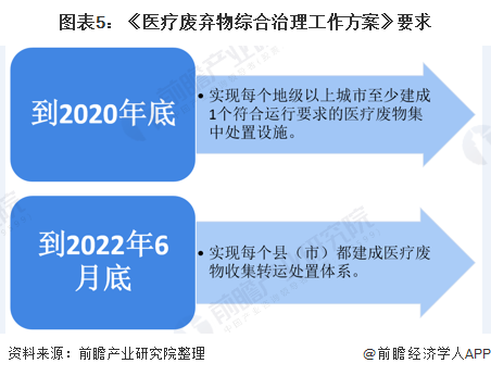 2020年2月24日,國家衛(wèi)健委、生態(tài)環(huán)境部等十部委聯(lián)合印發(fā)《醫(yī)療廢棄物綜合治理工作方案》,《方案》要求,要在2020年年底前實現(xiàn)每個地級以上城市至少建成1個符合運行要求的醫(yī)療廢物集中處置設施;到2022年6月底前,實現(xiàn)每個縣(市)都建成醫(yī)療廢物收集轉(zhuǎn)運處置體系。