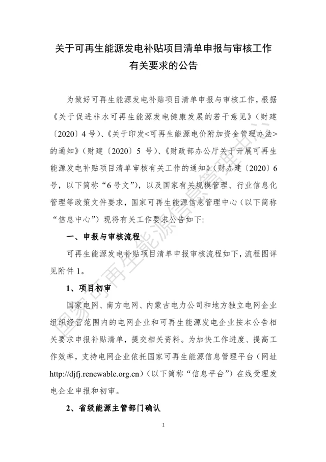 近日,國(guó)家能源局可再生能源發(fā)電項(xiàng)目信息管理平臺(tái)發(fā)布《關(guān)于可再生能源發(fā)電補(bǔ)貼項(xiàng)目清單申報(bào)與審核工作有關(guān)要求的公告》,詳細(xì)介紹了包括光伏在內(nèi)的可再生能源發(fā)電補(bǔ)貼項(xiàng)目該如何申報(bào)。具體如下: