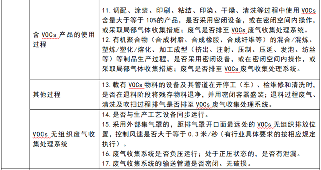 VOCs治理的逐步深入,加強(qiáng)了VOCs治理成效的客觀準(zhǔn)確評(píng)估的迫切性需求?,F(xiàn)場(chǎng)VOCs專(zhuān)項(xiàng)執(zhí)法檢查,特別是中央環(huán)保督查,地方性環(huán)保督查也將VOCs專(zhuān)項(xiàng)達(dá)標(biāo)檢查列為重點(diǎn)工作內(nèi)容。因此,這也逐步要求監(jiān)管單位對(duì)VOCs專(zhuān)項(xiàng)執(zhí)法提出明確要求,執(zhí)法人員查什么?怎么查?這張南通市生態(tài)環(huán)境局發(fā)布的檢查表從物料儲(chǔ)存、轉(zhuǎn)移和輸送、無(wú)組織排放、設(shè)備與管線、敞開(kāi)液面、VOCs有組織排放排氣筒、VOCs治理設(shè)施(RTO、CO、吸附吸收、噴淋洗滌等設(shè)施)等方面進(jìn)行了詳細(xì)回答,可作參考,生產(chǎn)企業(yè)也可對(duì)照此表進(jìn)行VOCs治理內(nèi)部核查!內(nèi)容如下: