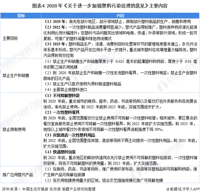 2020 年1 月19 日,國(guó)家發(fā)展改革委、生態(tài)環(huán)境部公布《關(guān)于進(jìn)一步加強(qiáng)塑料污染治理的意見(jiàn)》,提出要有序禁止、限制部分塑料制品的生產(chǎn)、銷(xiāo)售和使用,對(duì)不可降解塑料袋、一次性塑料餐具、賓館酒店一次性塑料用品、快遞塑料包裝等多領(lǐng)域塑料的使用進(jìn)行分階段管理,提出要積極推廣替代產(chǎn)品,規(guī)范塑料廢棄物回收利用,建立健全塑料制品生產(chǎn)、流通、使用、回收處置等環(huán)節(jié)的管理制度。
