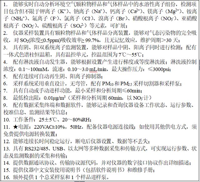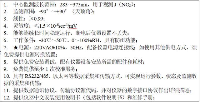 采購的項目內容包括光解速率觀測儀1臺、重金屬監(jiān)測儀1臺、氣溶膠可溶性離子監(jiān)測儀1臺,其中光解速率觀測儀、氣溶膠可溶性離子監(jiān)測儀允許進口產品投標,重金屬監(jiān)測儀不接受進口產品投標。