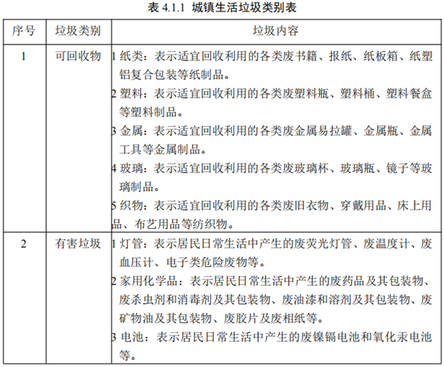 4.1.2 城鎮(zhèn)生活垃圾類別應(yīng)符合表 4.1.1 的規(guī)定。