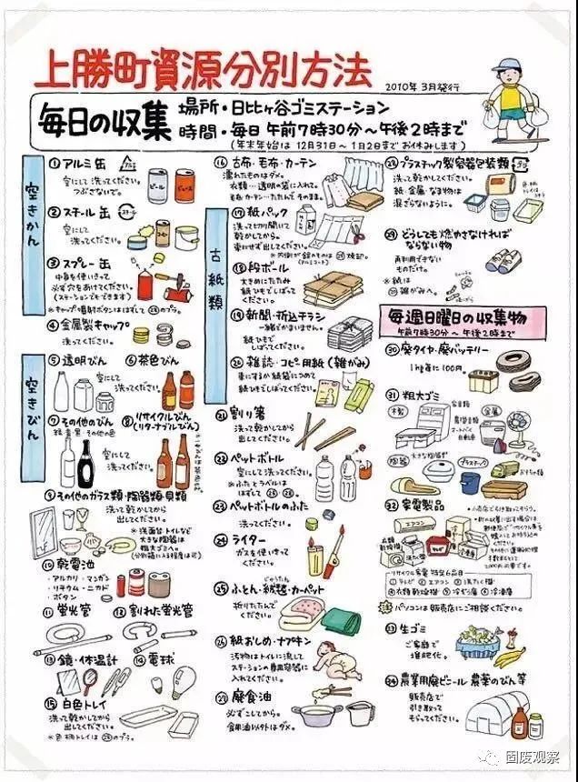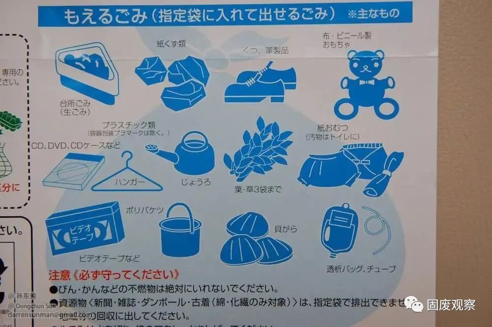 橫濱市分發(fā)給居民的垃圾分類手冊長達(dá)27頁,包含條款518項(xiàng)。如:口紅屬可燃物,但用完的口紅管屬小金屬物;水壺屬金屬物,但12英寸以下屬小金屬物,12英寸以上則屬大廢棄物;襪子,若為一只屬可燃物,若為兩只并且“沒被穿破、左右腳搭配”則屬舊衣料;領(lǐng)帶也屬舊衣料,但前提是“洗過、晾干”。