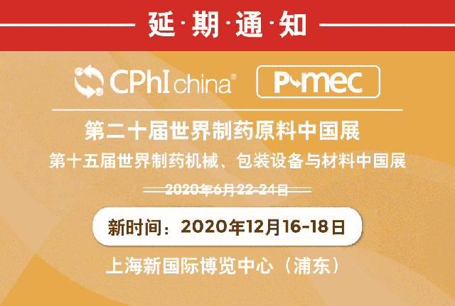 根據(jù)中國(guó)國(guó)務(wù)院于2020年4月6日下發(fā)的《關(guān)于進(jìn)一步做好重點(diǎn)場(chǎng)所重點(diǎn)單位重點(diǎn)人群新冠肺炎疫情防控相關(guān)工作的通知》要求,原定于2020年6月22-24日的CPhI & P-MEC China已無(wú)法如期召開。主協(xié)辦單位雖已為六月份展會(huì)投入了巨大的人力物力,籌備工作也已基本就緒,但作為負(fù)責(zé)任的國(guó)際展會(huì)平臺(tái),我們積極響應(yīng)中國(guó)政府打好疫情防控“保衛(wèi)戰(zhàn)”的號(hào)召,始終把參展商、參觀商、供應(yīng)商和服務(wù)人員的安全與健康放在首位。在充分尊重參展商意愿的基礎(chǔ)上,并經(jīng)多方協(xié)調(diào)和認(rèn)真論證后,主協(xié)辦單位決定作出如下調(diào)整:第二十屆世界制藥原料中國(guó)展暨第十五屆世界制藥機(jī)械、包裝設(shè)備與材料中國(guó)展將延期至2020年12月16-18日召開,舉辦地點(diǎn)不變(仍為上海新國(guó)際博覽中心)。