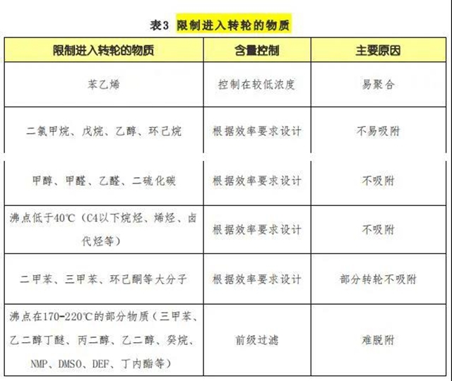 在沸石分子篩轉(zhuǎn)輪上易發(fā)生聚合反應(yīng)的烯烴類(lèi)物質(zhì)、有機(jī)硅氧烷、沸 點(diǎn)超高260℃以上的大分子物質(zhì)等,可能會(huì)對(duì)轉(zhuǎn)輪造成永久性損壞?,F(xiàn)列出沸石轉(zhuǎn)輪無(wú)法處理的物質(zhì)成分,如下圖: