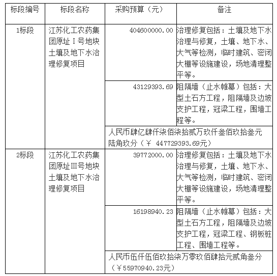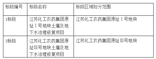 (1)本次招標(biāo)項(xiàng)目為江蘇化工農(nóng)藥集團(tuán)原址Ⅰ號、Ⅲ號地塊土壤及地下水治理修復(fù)項(xiàng)目共分2個(gè)標(biāo)段,分別為1標(biāo)段、2標(biāo)段。