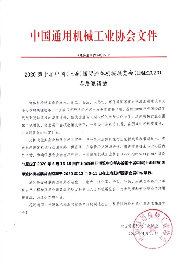 一場突如其來的疫情打亂了整個行業(yè)的節(jié)奏,作為年度流體機械行業(yè)國際性盛會,為確保海內外展商的參展效果,保障廣大展商和觀眾的安全和健康,第十屆中國(上海)國際流體機械展覽會(IFME)主辦方中國通用機械工業(yè)協(xié)會(以下簡稱:“中通協(xié)”)決定IFME2020延期舉辦。經過多方積極地協(xié)調與溝通,中通協(xié)宣布IFME2020遷移至全球一大會展綜合體——國家會展中心(上海), 于12月9-11日舉辦。移師新館的IFME2020戰(zhàn)略布局全面升級,輻射全中國,將再次引領流體機械行業(yè)轉型升級,實現(xiàn)跨越式發(fā)展。