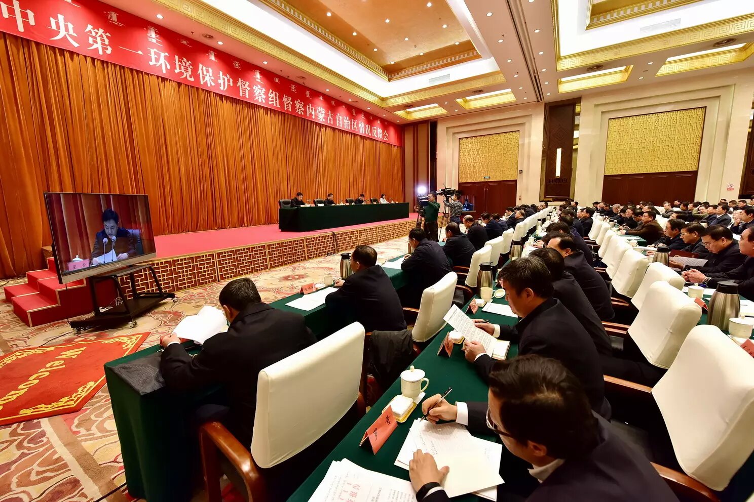 11月12日上午,中央第一環(huán)境保護(hù)督察組督察內(nèi)蒙古自治區(qū)情況反饋會(huì)現(xiàn)場(chǎng)。攝影/章軻