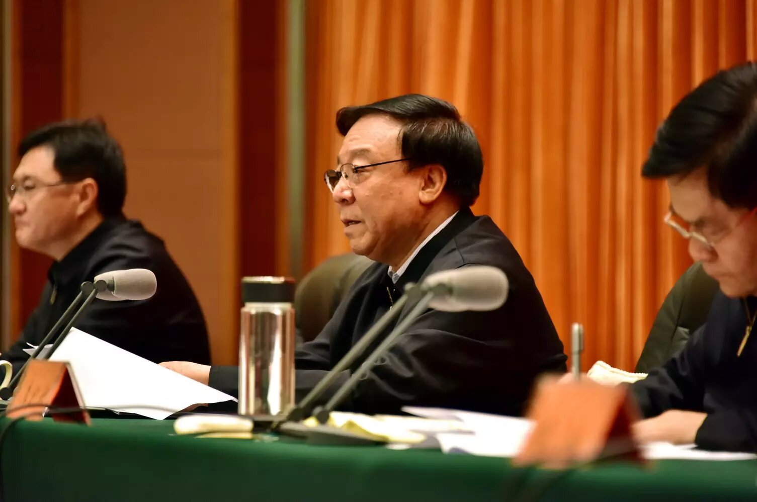 11月12日上午,中央第一環(huán)境保護(hù)督察組督察內(nèi)蒙古自治區(qū)情況反饋會(huì)上,督察組組長(zhǎng)、全國(guó)人大環(huán)資委主任委員陸浩。攝影/章軻