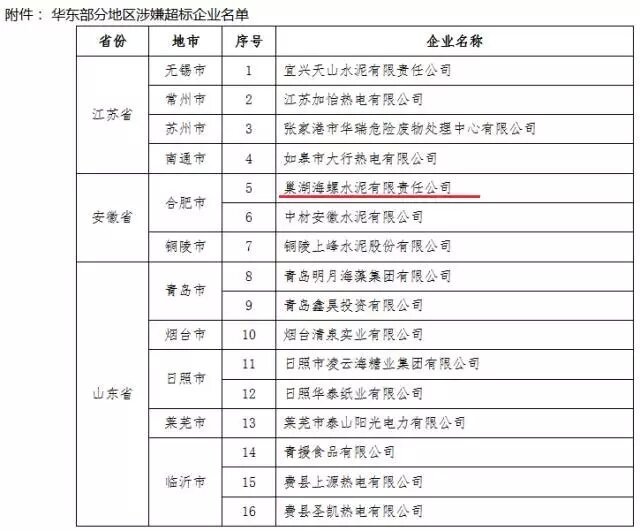 ▲10月,華東部分地區(qū)大氣污染物涉嫌超標排放的16家企業(yè)名單