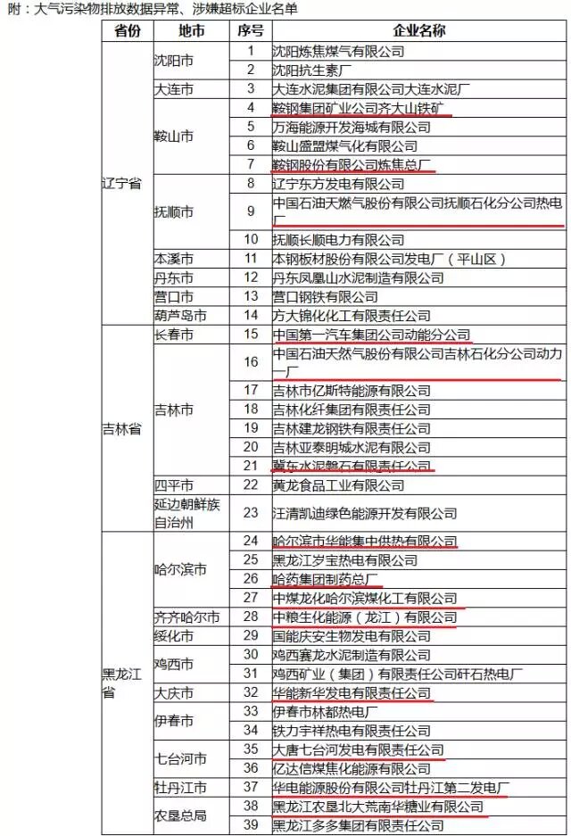 ▲10月,東北地區(qū)大氣污染物涉嫌超標排放的39家企業(yè)名單大企業(yè)本應是遵紀守法的模范,在環(huán)保方面做表率,帶頭履行社會責任,然而卻涉嫌超標排放,實屬不該。一是集團缺乏有效監(jiān)管,環(huán)保責任沒有落實到位,這屬于管理不善。二是雖然明知下屬企業(yè)超標排污卻聽之任之,沒有采取措施阻止污染,這屬于縱容、包庇。無論是哪種情況,都表明一些大企業(yè)、大集團在履行環(huán)保責任方面存在缺失。