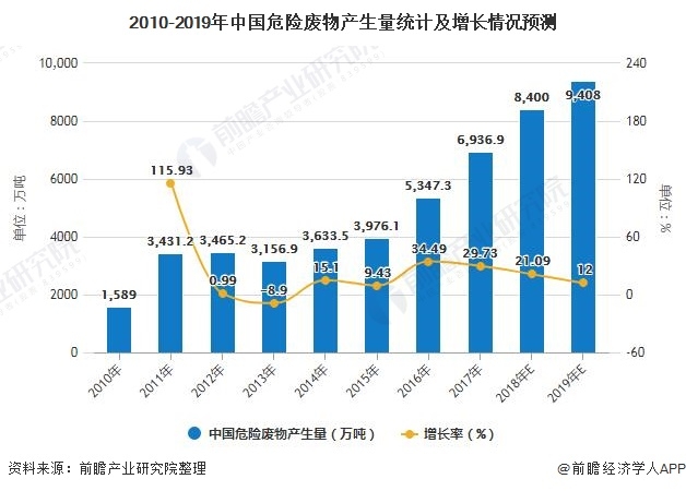 2、2020年中國(guó)危廢產(chǎn)生量預(yù)計(jì)突破1億噸,危廢處置向深度資源化發(fā)展