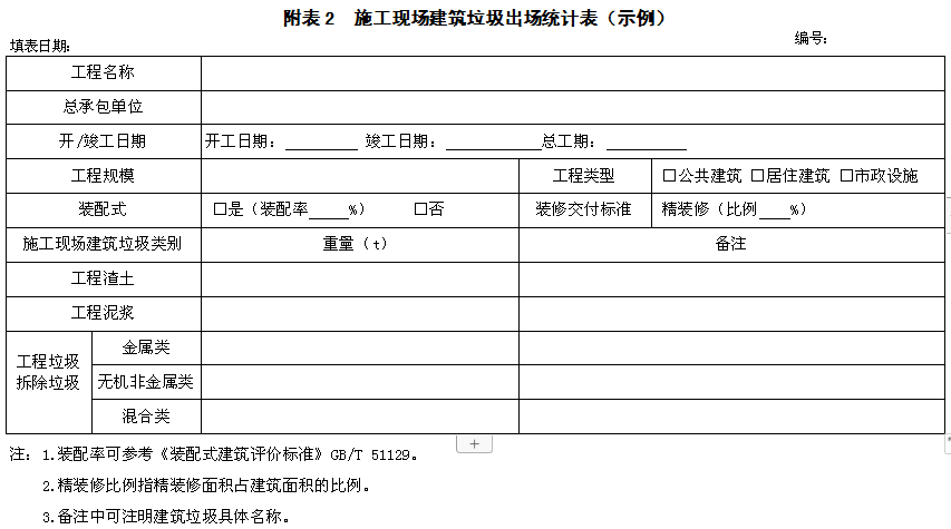 7.2 建筑垃圾每次稱重(計(jì)量)后,應(yīng)及時(shí)記錄且須按各類施工現(xiàn)場建筑垃圾實(shí)際處理情況填寫,并保持記錄的連續(xù)性、真實(shí)性和準(zhǔn)確性。記錄應(yīng)留存?zhèn)洳椤S涗浄譃槿粘S涗洷砗徒y(tǒng)計(jì)表,具體可參考附錄B表1、2。