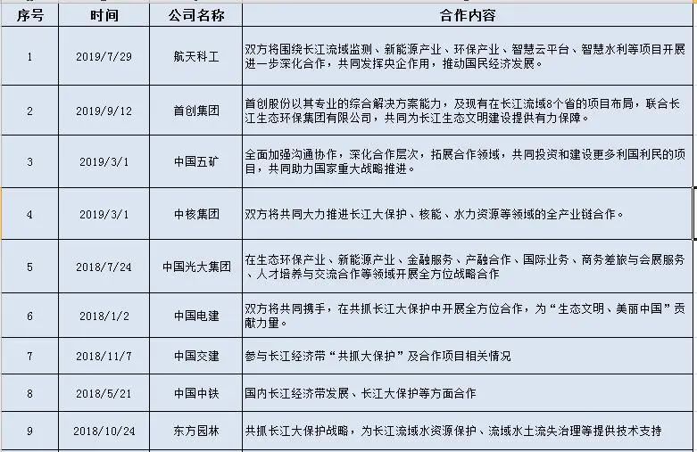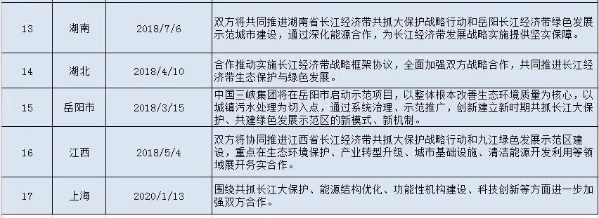 據(jù)不完全統(tǒng)計(jì),截止2020年4月,政府方面:有 7個(gè)?。ㄊ校┘?1個(gè)市縣;企業(yè)方面:有多家基建、環(huán)保企業(yè)及金融機(jī)構(gòu)簽訂長(zhǎng)江大保護(hù)框架協(xié)議。