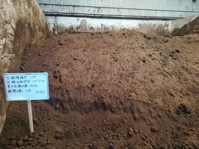 發(fā)酵44天,翻槽4次,含水量降至25.86%