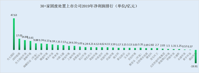 有的固廢龍頭盈利幾十億元,還有的只盈利幾千萬,亦有虧損20億的,“有人吃肉、有人喝湯、還有人飯碗被砸了”,業(yè)績懸殊較大。