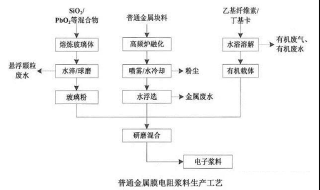 電阻漿料主要由導電相(功能相)、黏結(jié)相(玻璃相)和有機載體三部分組成。生產(chǎn)廢氣中的主要污染物為VOCs 、粉塵。