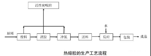 一般情況下,熱熔膠的制備是先將反應釜加熱到一定溫度,把原料按投料順序依次投入到反應釜內(nèi)。經(jīng)過加熱和攪拌均勻,如果需要應抽真空和充氮氣,達到出膠喉,放料進入擠出機。擠出機后,膠條通過同步牽引到水下起粒機。