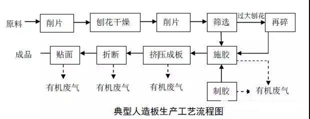 人造板加工行業(yè)VOCs廢氣主要來源于以下環(huán)節(jié):(1)膠合板VOCs的排放主要在單板干燥過程及制膠、施膠、熱壓過程;(2)刨花板主要為涂料、熱壓和鋸邊過程中產(chǎn)生的甲醛等;(3)中密度纖維板有機廢氣主要包括熱磨制漿過程產(chǎn)生的有機廢氣、施膠和纖維干燥過程產(chǎn)生的有機物、纖維板熱壓過程產(chǎn)生的有機廢氣。