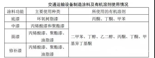 交通運輸設(shè)備制造過程中最大的產(chǎn) VOCs 環(huán)節(jié)是涂裝工藝。底涂普遍采用陰極電泳涂裝,中涂、面涂少數(shù)企業(yè)使用水性涂料涂裝,多數(shù)為溶劑型涂料涂裝。