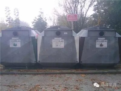 德國(guó)人的日常生活中垃圾大致可以分為六類:生物垃圾(Bioabfall oder Biomüller)、廢紙(Altpapier)、包裝袋(Gelber Sack)、有毒廢物(Giftmobil)、廢舊玻璃(Glas)和其他垃圾(Restabfall)。每戶人家至少有黑色垃圾箱(Restabfall雜項(xiàng)垃圾);黃色垃圾箱(Gelbe Sack或者只是黃色塑料袋,可在市鎮(zhèn)指定地點(diǎn)領(lǐng)取:放置塑料瓶、包裝袋、易拉罐、牛奶盒等);棕色垃圾箱(Bioabfall生物垃圾:廚余,包括咖啡濾紙、茶包及花園廢物,樹枝樹葉剪下的野草等);藍(lán)色或綠色垃圾箱:廢紙(Altpapier)。有毒廢物(Giftmobil)、廢舊玻璃(Glas)都是在指定場(chǎng)所丟置,玻璃瓶還要根據(jù)白(就是透明的)、綠、咖啡,丟不同顏色的箱子。